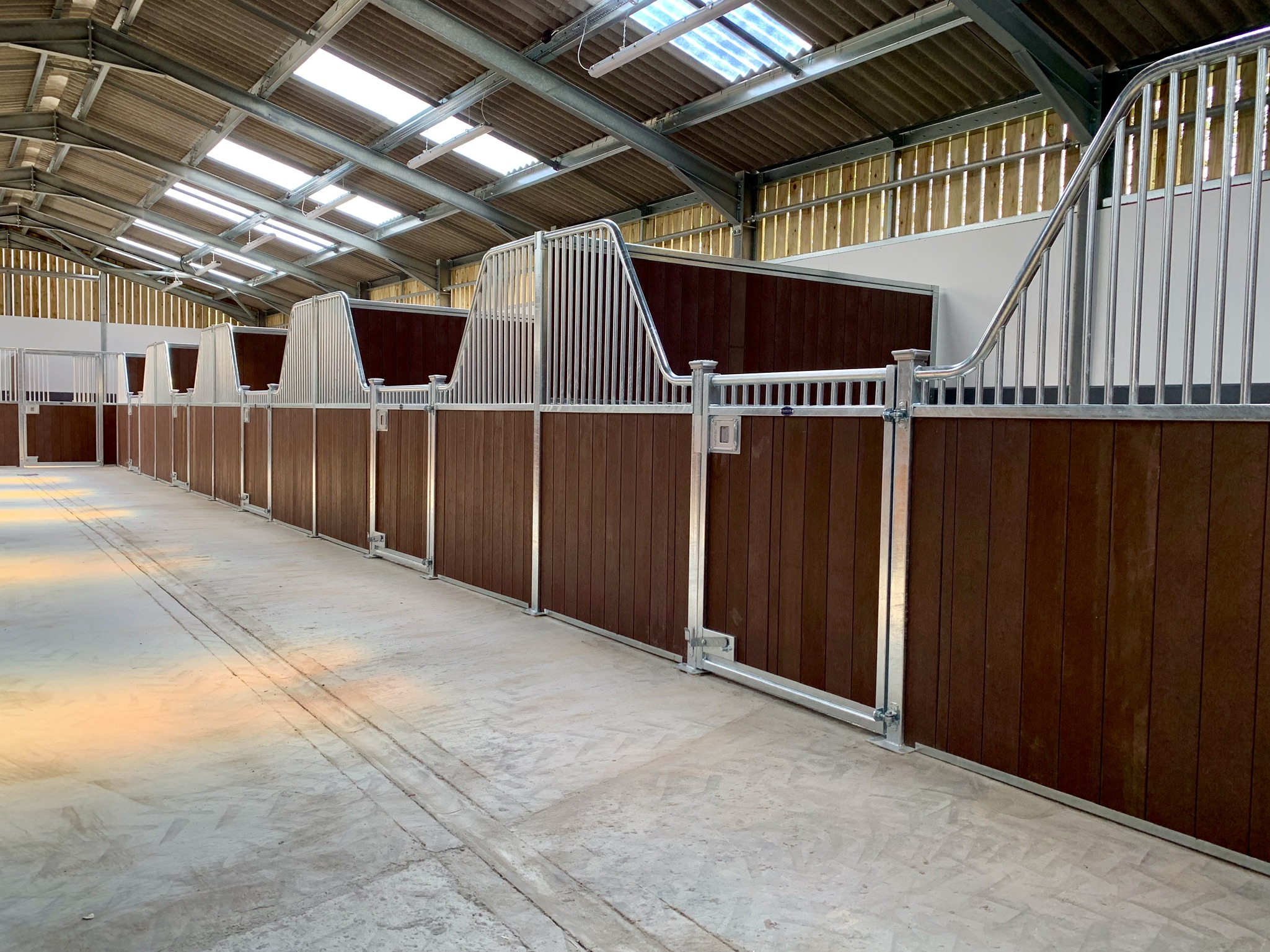 Protective powder coating ensuring the longevity of internal stable steelwork.